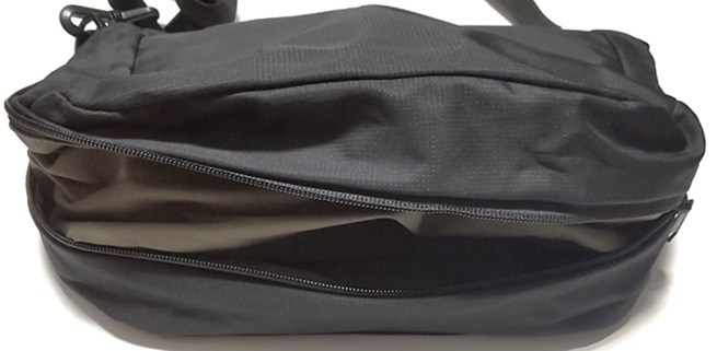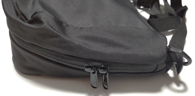 そうそう、ショルダーバッグ時の中間のファスナーを締めたままにしておけば、2部屋あるリュックになります。