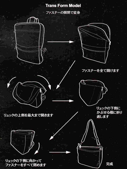 カバンの名前「リュックに変身ショルダーバッグ」のごとくリュックになったり、ショルダーバッグになったりします。